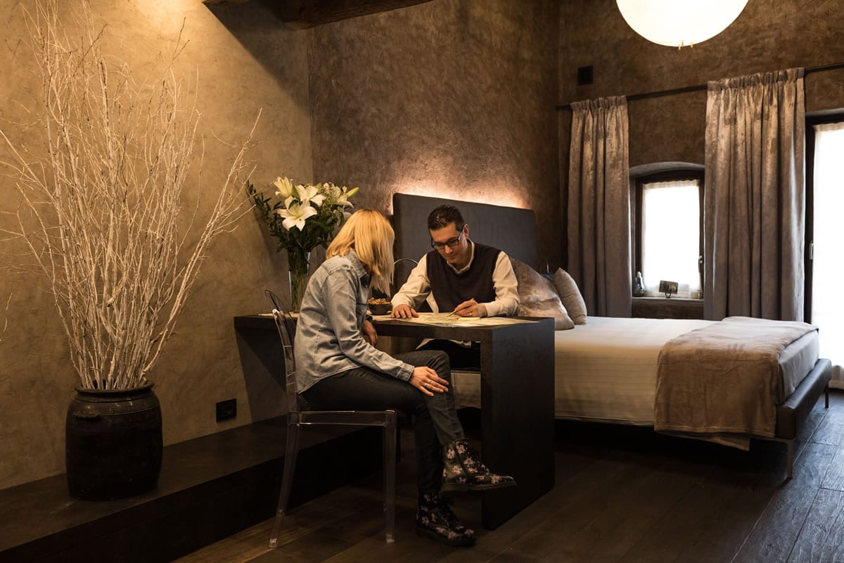 Una Suite per chi cerca raffinatezza e charme nel centro di Aosta. Dotata di letto king size, vasca da bagno nera free standing Kaldewei con sagoma interna, morbida ed ellittica perfetta per un bagno rilassante, tanto da soli che in due, 2 chaises longues riscandanti, frigobar, soppalco con angolo lettura, 2 balconi vista montagne, doccia extra large, smartTV, bollitore, connessione Wi-Fi gratuita, musica d’ambiente, cassetta di sicurezza per laptop, possibilità di effettuare massaggi in camera.